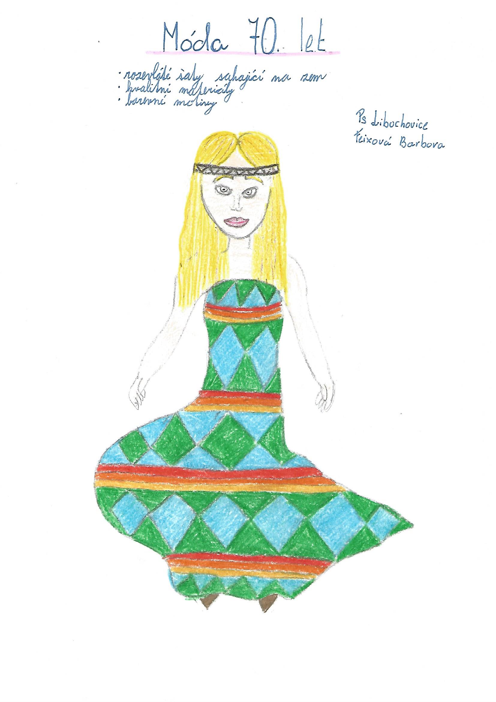 Jaká byla móda šedesátých let? Na jedné straně nespoutanost a barevnost květinových dětí, na druhé elegance a uhlazenost áčkových šatů. Rok 1964 je také spojen s první minisukní. Také tentokrát se můžete pustit do naší papírové panenky, nakreslit můžete i nový vzor šatů podle vyprávění babičky nebo dědy, tentokráte ale u kreslení neskončíme… Připraven máte střih na šaty a podle něj si nastříhejte vhodnou látku a ušijte šaty pro vaši papírovou panenku.