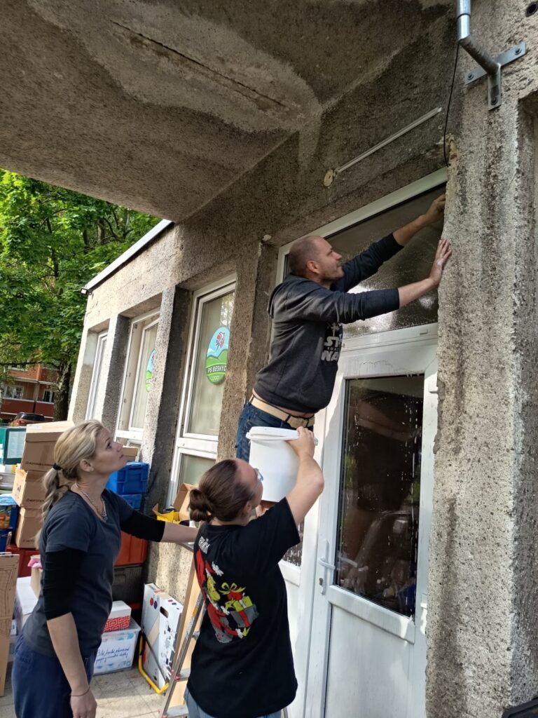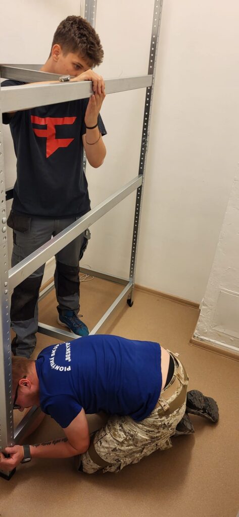 Co by byla skupina bez šikovných rukou? Proto se v neděli o státním svátku, kdy můžou všichni pionýři odpočívat, sešlo vedení PS Beskyd a každý přidal ruku k dílu. Jeden maloval, druhý umýval okna a jiní, šikovní a silní muži, šroubovali a vrtali regály a police.
