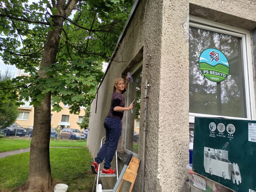 Aby se už na dálku o nás vědělo, nechali jsme udělat polepy na okna. Ale to není vše… Po Ostravě (a nejen tam) jezdí auta našich vedoucích s magnetickým polepem tak, aby se lidé dozvěděli, že jsou tady nějací pionýři, a aby zjistili, že to dělají s láskou.