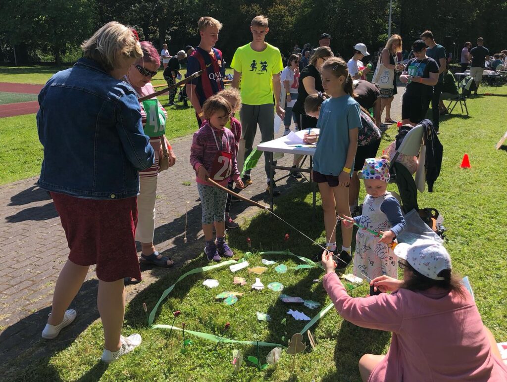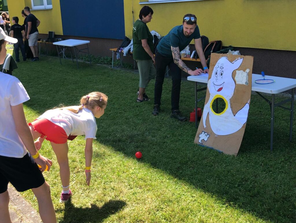 Dne 14.6. jsme pomáhali na Sportovním dni pro zdravotně postižené děti a dospělé. Pomáhali jsme na sportovních stanovištích, jako je třeba hod oštěpem nebo vrh koulí, ale měli jsme připraveny také vlastní úkoly, jako třeba skládání obrázků nebo výlov rybníku.