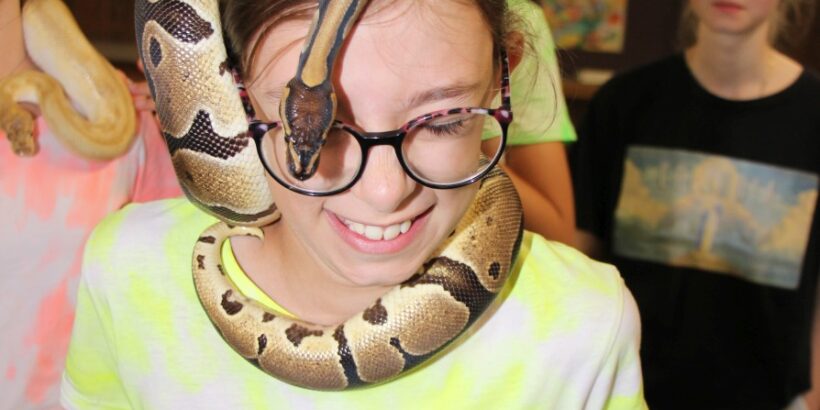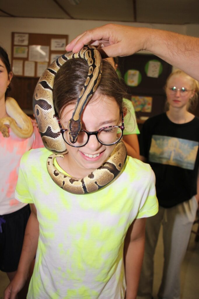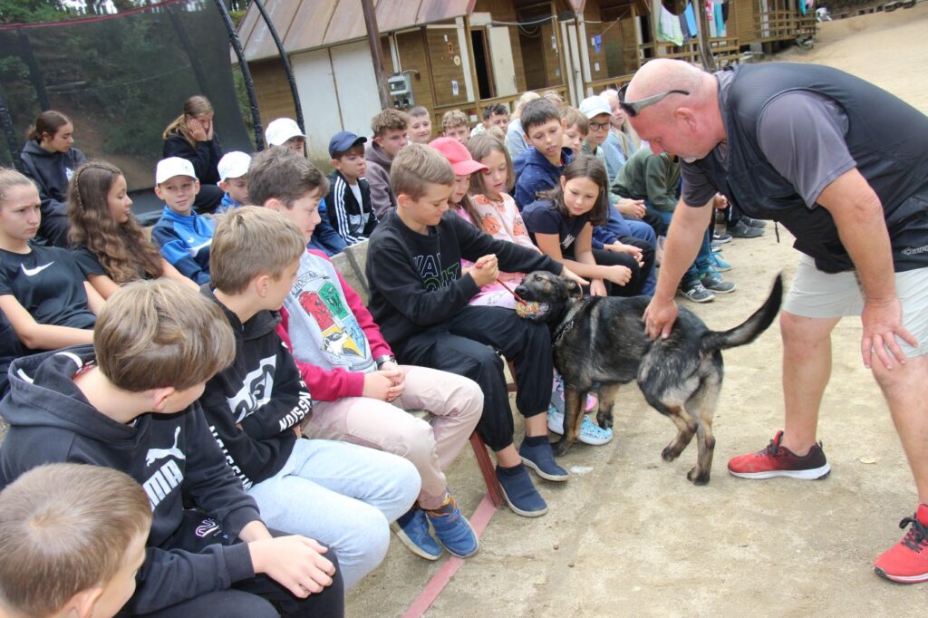 Děti na táboře poznaly práci psovodů a Policie ČR dále se zúčastnily přednášky a letové ukázky dravců a sov a také ukázky hadů.