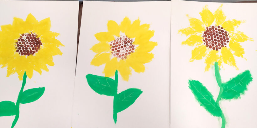 5) Ke vzniklé slunečnici děti domalují stonek a lístky slunečnice.