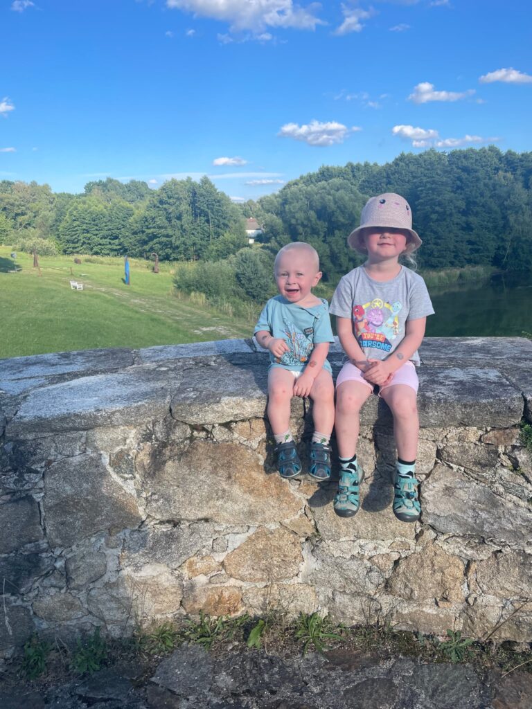 V okolí jsme navštívili tvrz, přilehlou louku se sochami a vodníky za rybníkem, místní hospůdku i les, odkud jsme si přinesli dva litry borůvek, takže večeře byla jasná.